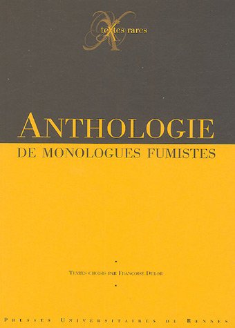 La collection « Textes rares » des Presses universitaires de Rennes nous fait la bonne surprise de proposer une Anthologie de monologues fumistes, établie par une spécialiste de la littérature théâtrale, Françoise Dubor. On devine à l’adjectif qui ferme ce titre la nature poilante des dits monologues et l’on se réjouit, par principe. Ensuite, plongé et comment ! dans cette riche et délectable matière de l’esprit, on se pourlèche. Mais, afin ne pas laisser le lecteur dans la perplexité, il faut préciser d’abord que le monologue est, en quelque sorte, un sketch, ou l’ancêtre du one-man-show...