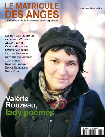 - Entretien Poésie de salut Valérie Rouzeau par Thierry Guichard Tissée au métier des autres poètes, baignée dans un humour en forme de cache-tristesse, l’écriture de Valérie Rouzeau se fait le sismographe intime des émotions. Elle ouvre une manière d’être au monde où le ludique, le sanglot et la colère brinquebalent la langue. Joliment. lire la suite